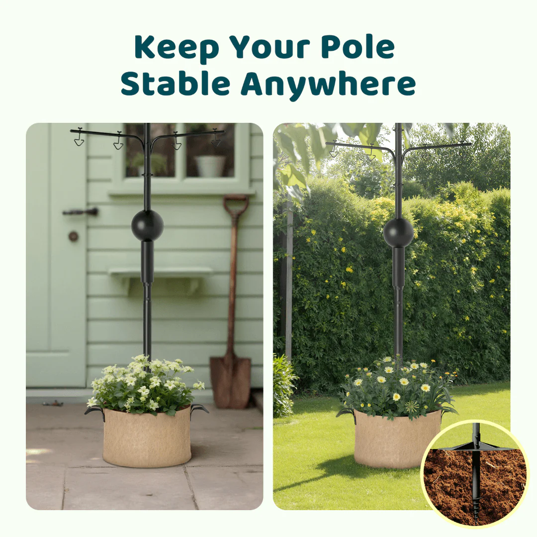 Includes a plant basket for added stability and a sturdy, rust proof metal plate to keep your Birdfy Pole secure and balanced. - Eco-Friendly Choice
